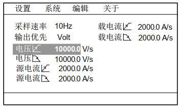 3. 選擇“電壓上升”“電壓下降”與“電流上升”“電流下降”進(jìn)行設(shè)置,電壓斜率單位為V/s,電流斜率單位為A/s。
